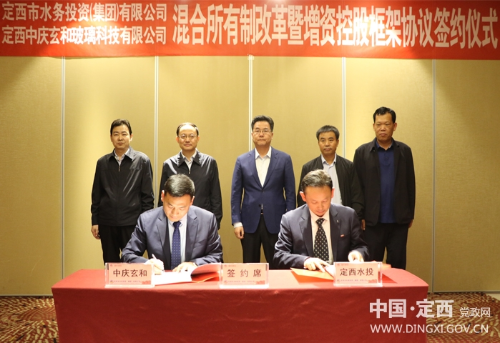 9月14日下午,定西水务投资(集团)有限公司和中庆玄和玻璃科技有限公司举行混合所有制改革暨增资控股框架协议签约仪式。