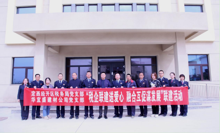 近日,国家税务总局定西经济开发区税务局党支部与甘肃华宜盛建筑材料开发有限公司党支部开展了以“税企联建送爱心 融合互促谋发展”为主题的联建活动。税务干部进行精准辅导,为企业解读税费政策,税企“连心”,携手共谋发展。