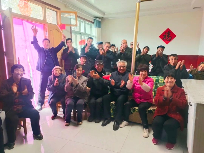 在安定区西巩驿镇小溪村庄窠湾社,唐胜杰的乡亲们也早早地聚集在一起,等待观看直播报道。